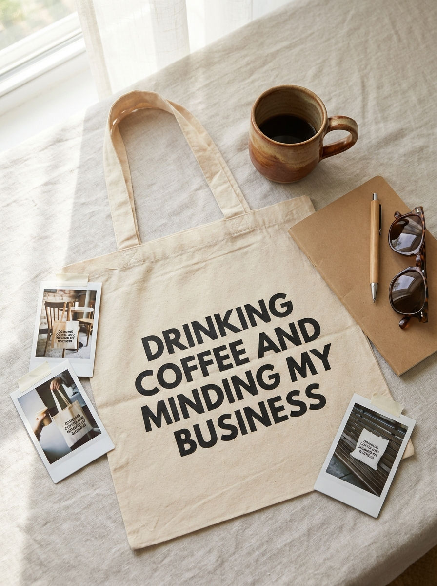 Drinking Coffee & Minding My Business Tote Bag – Funny Gift for Moms, Teachers,